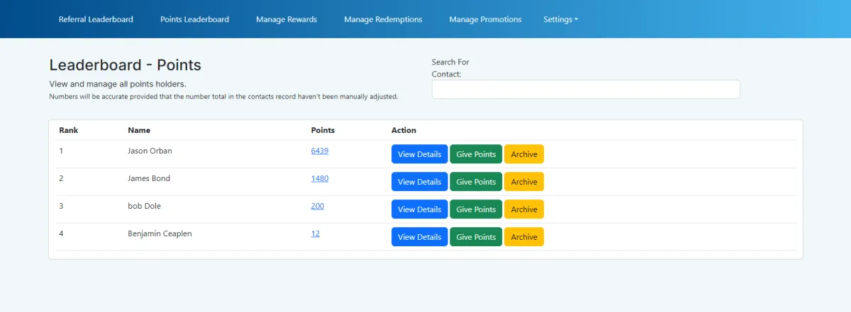 With the points leaderboard you can easily see who are your best point earners, and by clicking on their details you can see and track exactly how those VIP members are earning their points.
